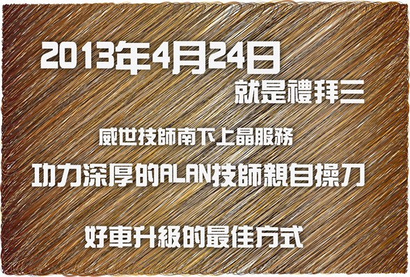 請來電預約,我們可以派專業技師到全省各大高鐵站幫您施工,讓您省掉舟車勞累喔!