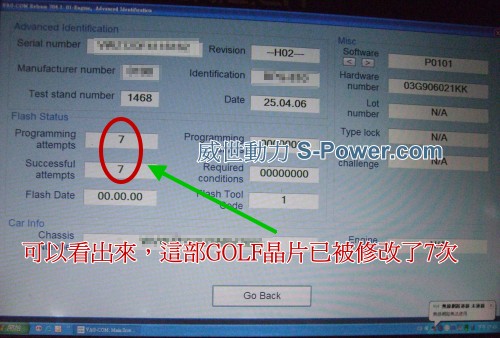 VAG車系的ECU電腦裡暗藏有計數器 所以每當車子晶片升級後  計數器就會多了一個數字