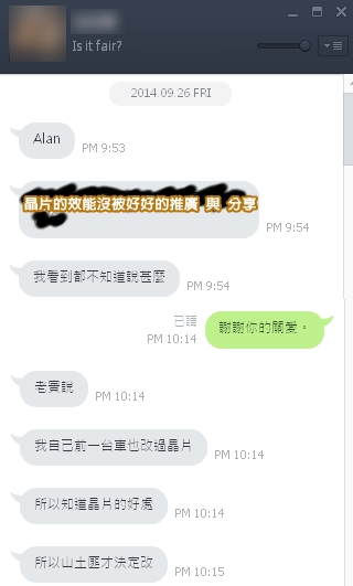 這是我跟車友對談的內容,跟大家分享喔!