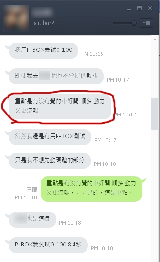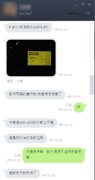 感謝車友特別用LINE 來感謝威世晶片提供他流暢動力與大幅馬力扭地力的提升