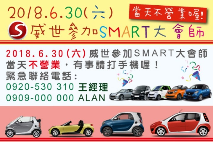 2018.6.30(六) 威世不營業,參加SMART大會師